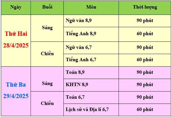 Lưu ý: Thời gian học sinh có mặt tại trường:
